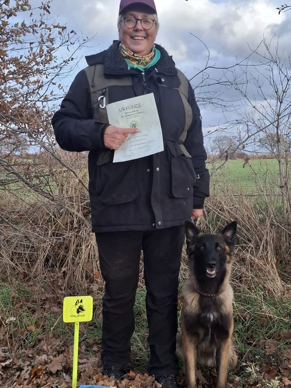 Heute hat Yvonne Zwick mit ihrem Boss die Mantrailprüfung abgelegt. Wir sagen herzlichen Glückwunsch und Respekt.
